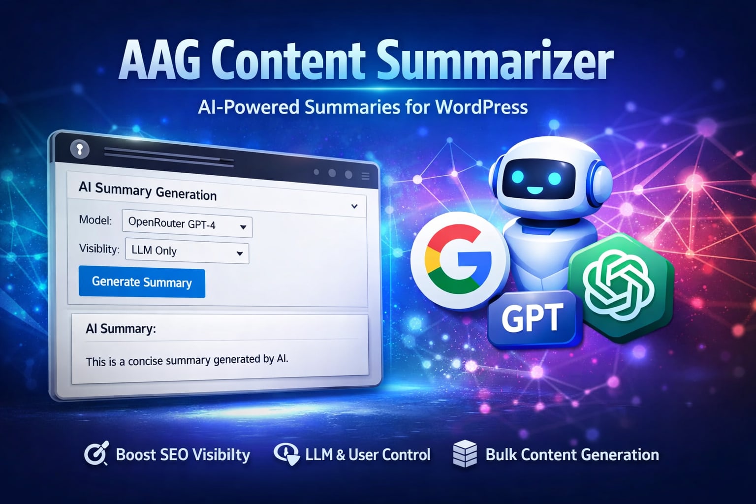 AAG Content Summarizer is a powerful tool designed to help you generate concise, professional summaries for your WordPress content using state-of-the-art LLMs via OpenRouter.
